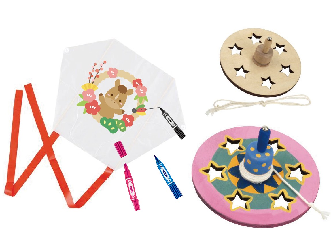 オリジナルたこづくりや、オリジナルコマを作ってみんなでお正月を楽しもう!